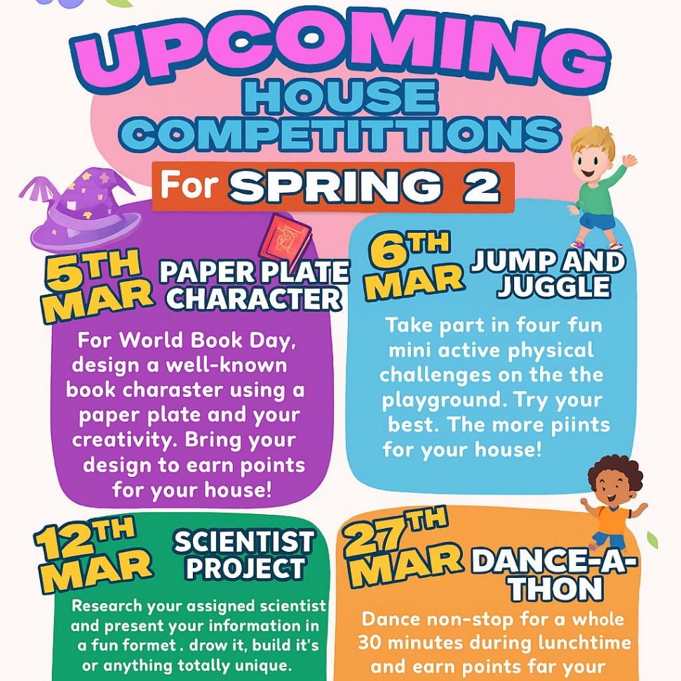 Corby Primary Academy is bursting with creativity and team spirit this Spring! π Our House Competitions for Spring 2 are just around the corner, and there’s something for everyone: